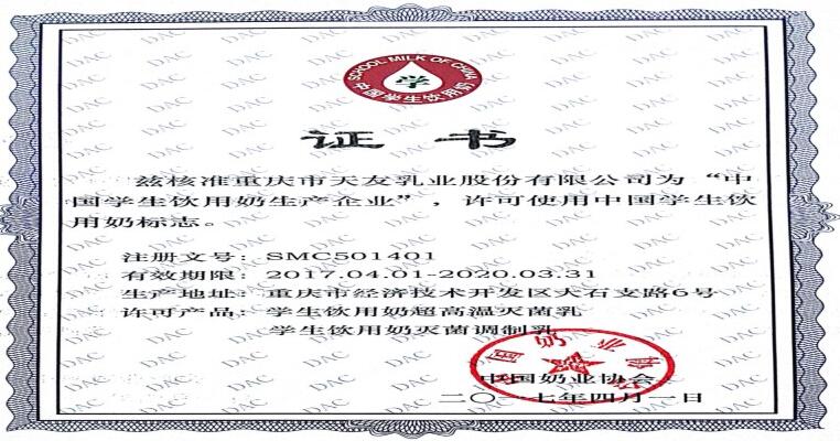 “中國學生飲用奶生產(chǎn)企業(yè)”榮譽的獲得,充分體現(xiàn)了國家對天友乳業(yè)公司學生飲用奶工作的肯定。未來,天友乳業(yè)公司將不辱使命,本著對祖國未來高度負責的精神,按照“安全、營養(yǎng)、方便、價廉”的原則,積極推進學生飲用奶工作,為改善民族體質(zhì)貢獻力量。